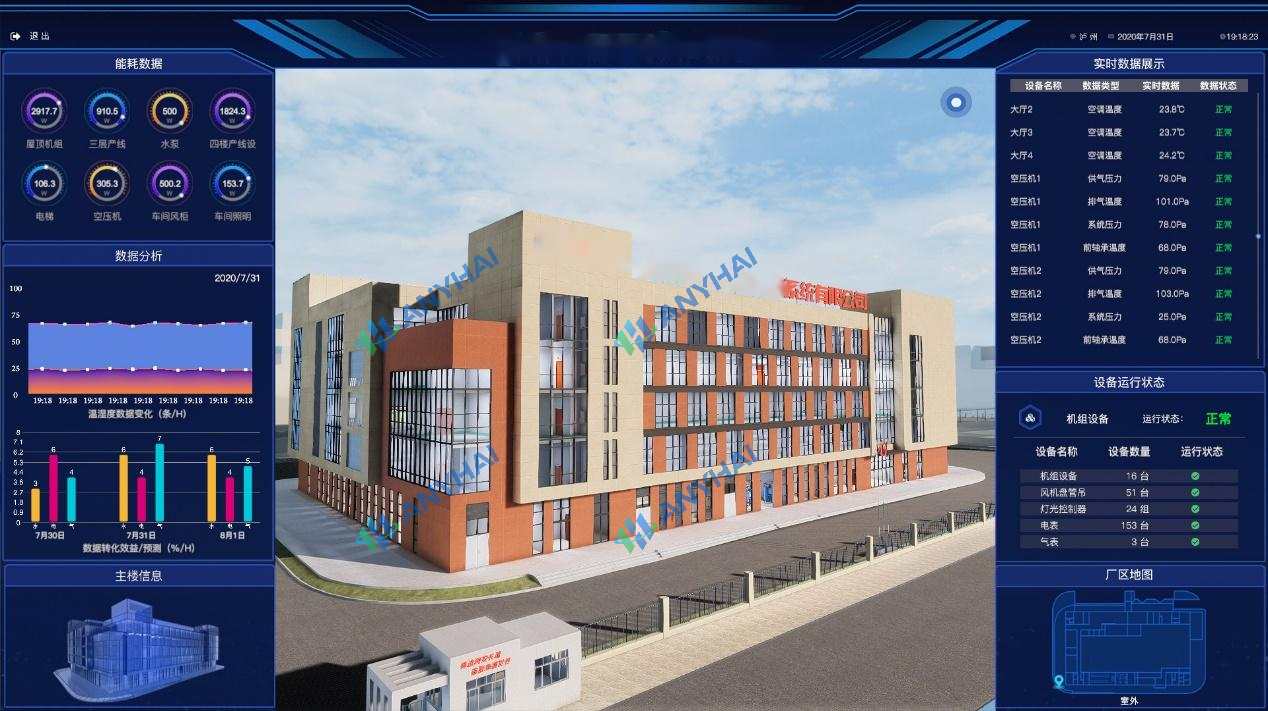 该项目中厂务监控管理系统以高效的数据采集为基础、集中式实时监控管理为目标,数字孪生可视化平台为呈现,打造国内一流的厂务监控信息系统。本厂务监控管理系统不仅整合了高低压配电、空压系统、空调系统、水系统、消防系统、门禁系统、视频系统、灯光系统、电梯系统等基础设置,还实时跟踪设备产线生产到封装打包等一体化过程,以完善的工业安全基础网络环境保障系统建设应用,以健全的数字化基础建设消除信息孤岛,并以全面覆盖的孪生监控管理打开工厂运营的黑匣,以全生命周期的设备管理方式服务于设备高效运转,为企业节能减排提供支撑。