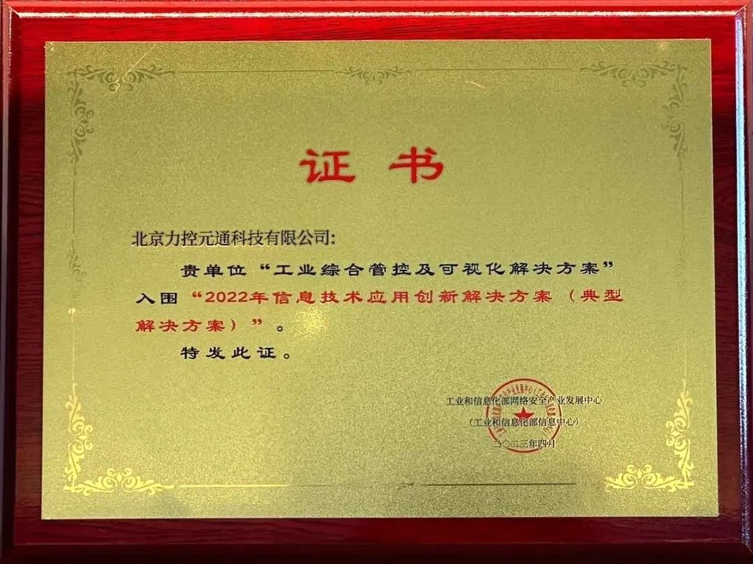 与会领导嘉宾共同发布了2022数字技术融合创新应用解决方案征集工作成果,力控科技凭借“工业综合管控及可视化解决方案”获得“2022年信息技术应用创新解决方案(典型解决方案)”证书并刊登入册。