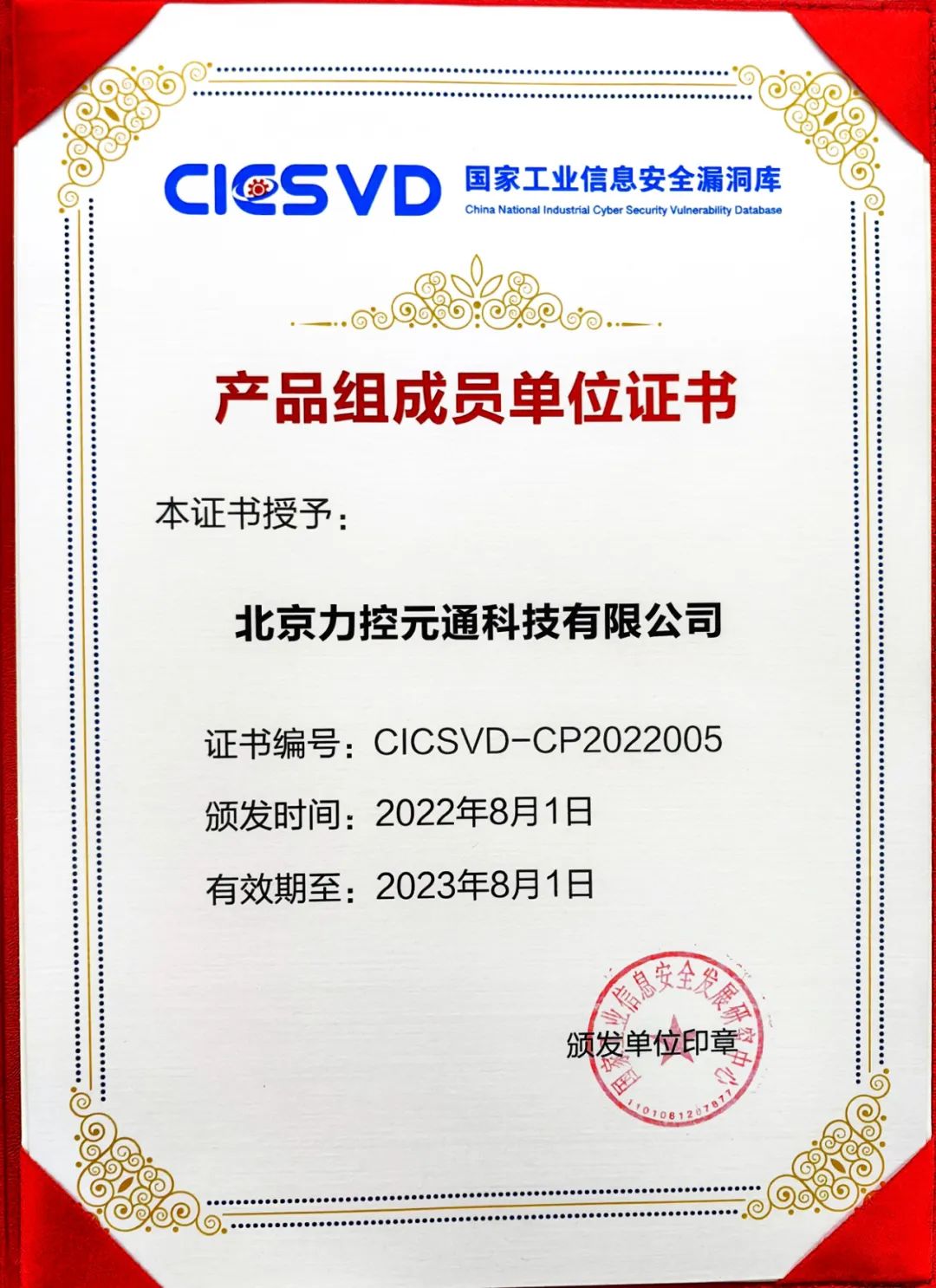 经过能力、业务范围以及影响力等方面的层层考察,力控科技成功入选国家工业信息安全漏洞库产品组成员单位,并于刚刚召开的CICSVD年度总结大会获得了荣誉证书。