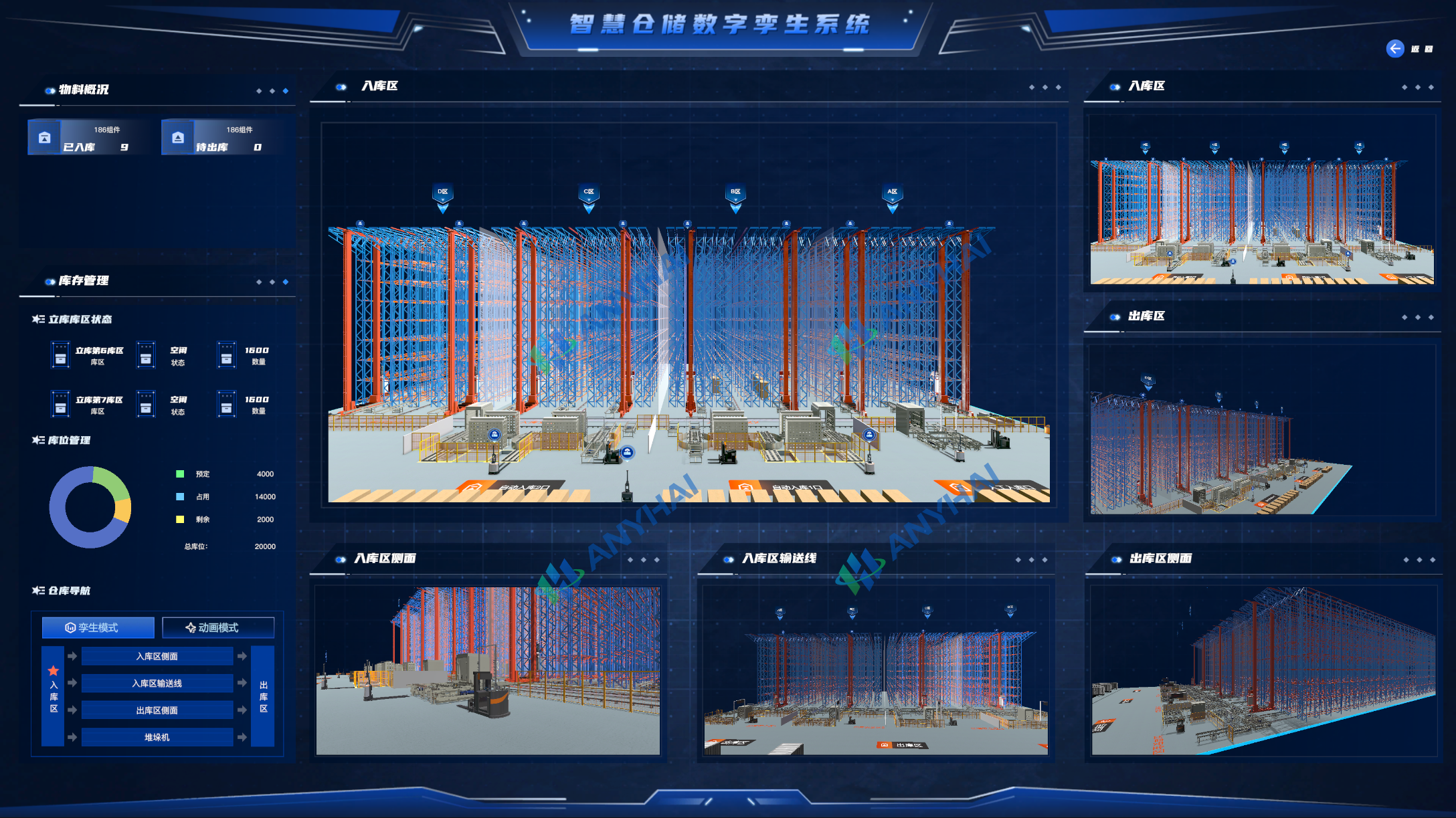本次项目为该光伏企业提供一套智慧立体仓库信息化建设-数字孪生解决方案,利用先进实用的云计算、大数据、人工智能、物联网技术,快速、准确的采集和利用“仓储物流”信息,规范和优化所有仓储物流相关业务流程,建立“决策层→管理控制层→业务操作层”纵向透明,各部门横向协同的仓储物流数字神经系统,提高该企业的核心竞争能力和仓储作业高速运行,促进仓储与生产作业高效协同运行,实现与产业链伙伴的深层次协同和服务。以数字化技术为先导,建立覆盖仓储物流领域的知识管理体系,建设仓储物流的综合管控系统支撑该企业中长期发展战略和阶段性目标。